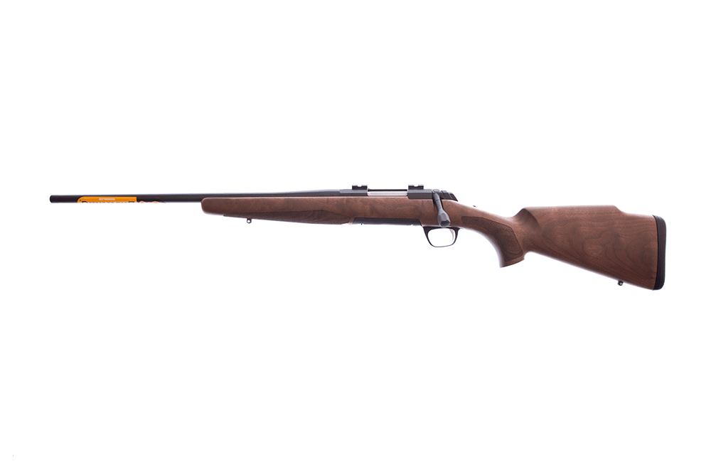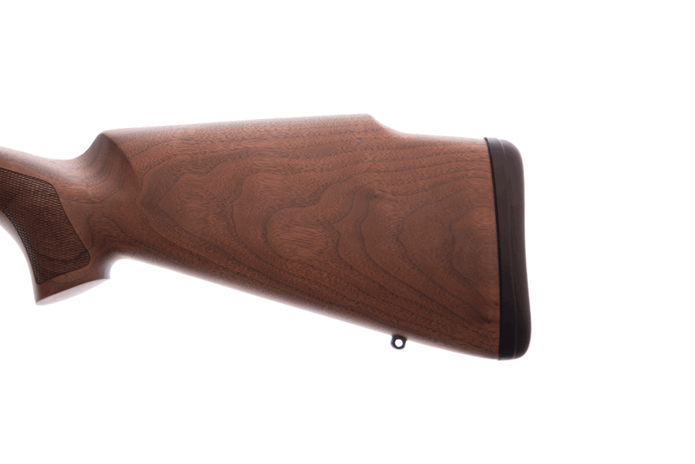 Valnötskolv med kindstöd i Monte Carlo stil och gummerad bakappa. Facettslipat slutstycke, löstagbart magasin. Pipan är fabriksgängad i M14x1.